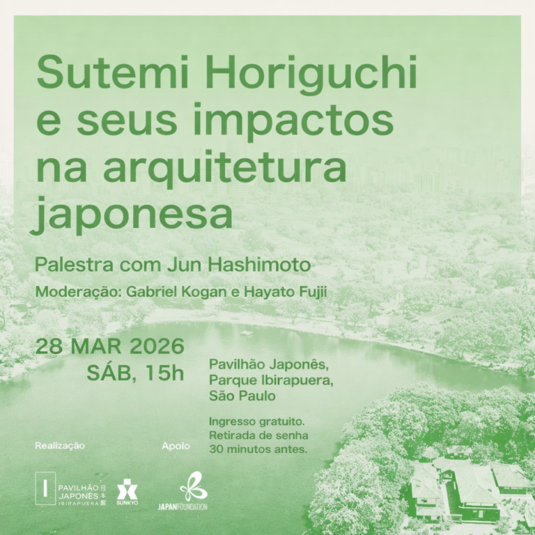Como parte da programação da exposição “Sutemi Horiguchi: Do modernismo japonês à construção do Pavilhão”, a Sociedade Brasileira de Cultura Japonesa e de Assistência Social (Bunkyo), com o apoio da Fundação Japão, realizam no dia 28 de março (sábado), às 15h, a palestra “Sutemi Horiguchi e seus impactos na arquitetura japonesa”,