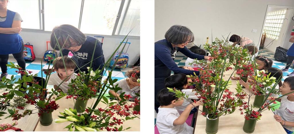 As crianças serão convidadas a participar da montagem de uma ikebana (arte do arranjo floral).