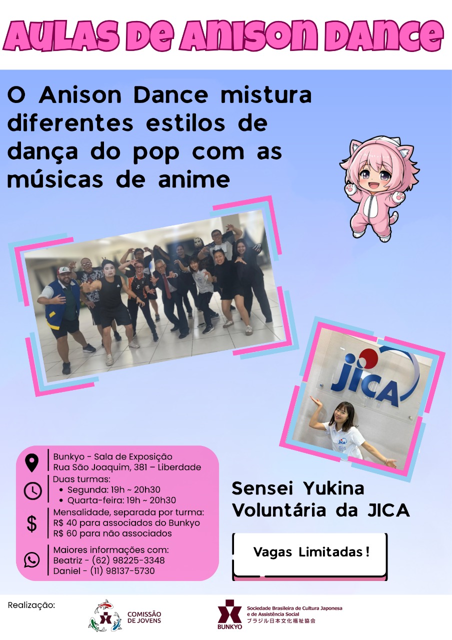Vamos aprender com a professora Yukina Natsume, voluntária da JICA e a Comissão de Jovens do Bunkyo, a reproduzir coreografias populares e criar coreografias originais, com músicas famosas de animes e J-Pop!