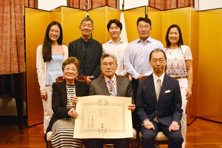 Cerimônia de Outorga da Comenda da Ordem do Sol Nascente do 7º Ano da Era Reiwa ao professor Ii-sei Watanabe, realizada em setembro de 2025. Foto: Jornal Brasil Nikkei.