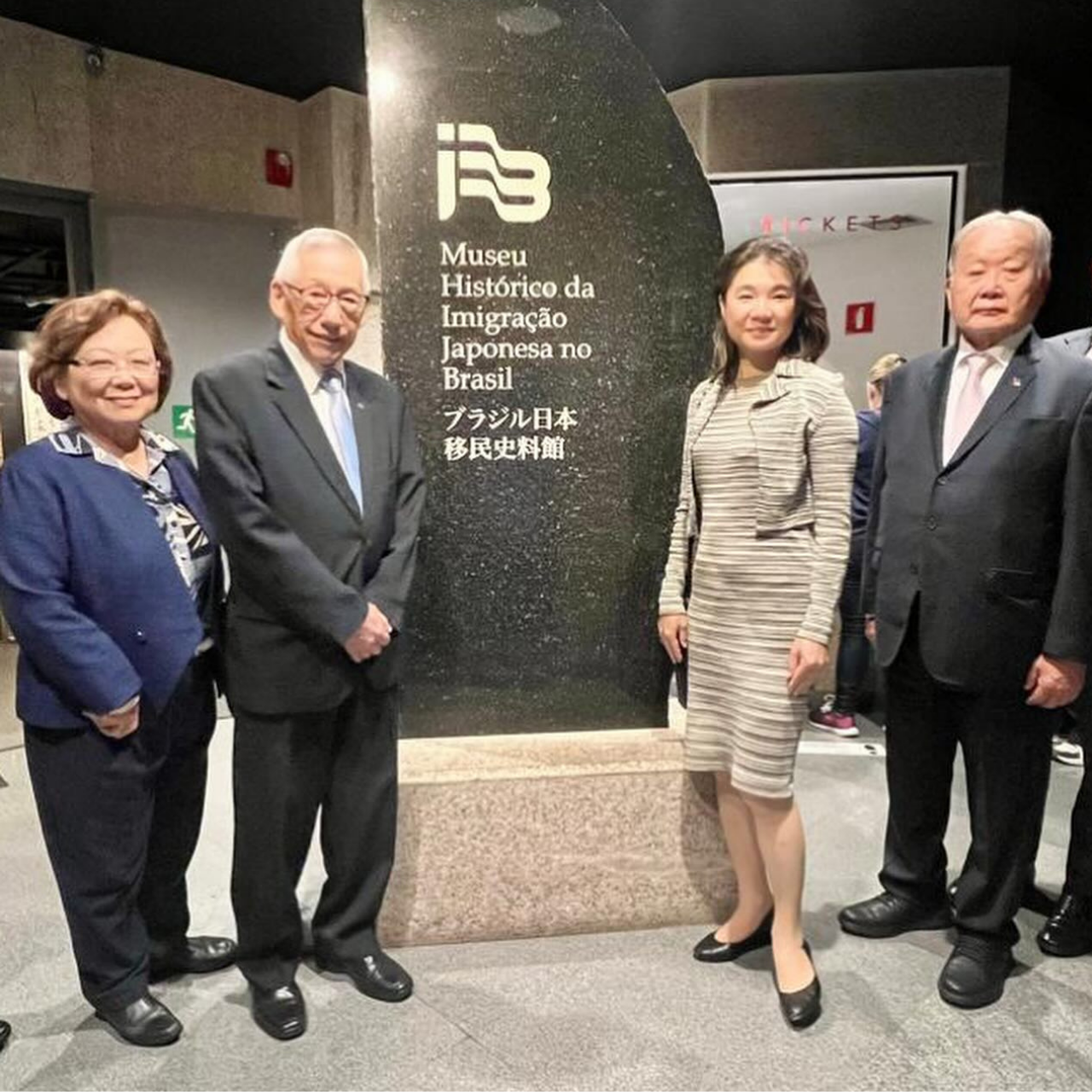 Com a Cônsul-Geral Yoriko Suzuki ao centro, da esq. para dir., Valter Sasaki (Vice-Presidente), Roberto Yoshihiro Nishio (Presidente), Teruco Kamitsuji (Vice-Presidente), Lidia Yamashita (Vice-Presidente), Renato Ishikawa (Presidente de Honra) e Jorge Yamashita (Presidente do Conselho Deliberativo). Em pé: Cônsul Daisuke Hattori, Toshiro Iwayama (Vice-Presidente da Comissão de Administração do Museu de Imigração Japonesa), Nagato Hara (Tesoureiro-Geral), Carlos Harasawa (Vice-Presidente), Carlos Kenji Fukuhara (Vice-Presidente), Tomio Katsuragawa (Vice-Presidente do Conselho Deliberativo), Oston Hirano (Vice-Presidente), Marco Tulio Toguchi (diretor) e Leonardo Inomata (Secretário-Geral).