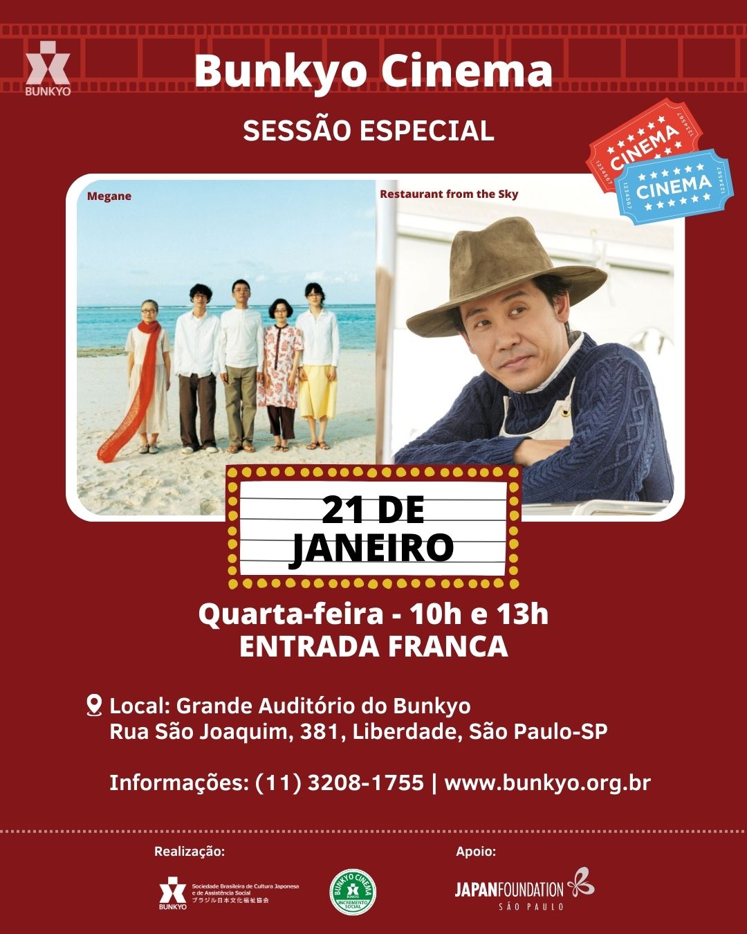 Com realização da Comissão de Incremento Social do Bunkyo e apoio da Fundação Japão em São Paulo, o Bunkyo Cinema irá exibir no Grande Auditório dois filmes japoneses com legendas em português.