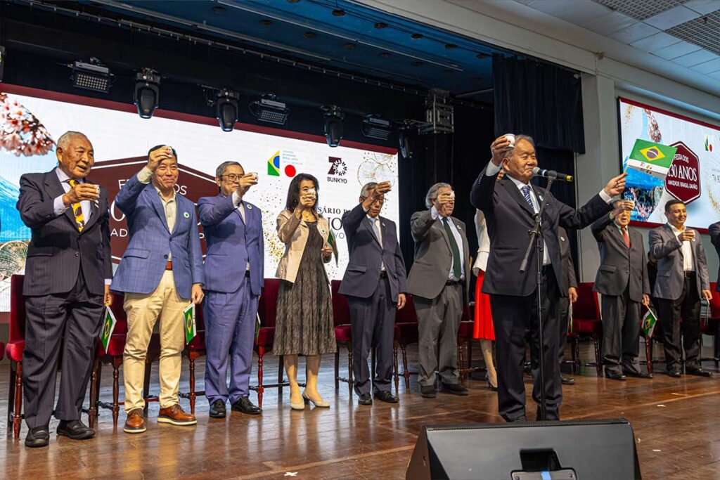 Enfim, todos juntos para celebrar dois momentos especiais da comunidade nipo-brasileira. O aniversário do Bunkyo que há 70 anos foi fundado com a missão de representá-la e o sucesso (e encerramento) dos eventos comemorativos dos 130 anos do Tratado de Amizade Brasil-Japão.