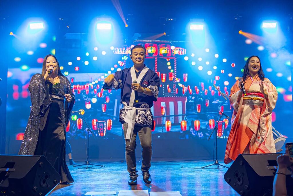 No palco, o Grupo Sankyu deu o ritmo e as cantoras Paula Hirama e Suzana Sano mais o cantor Joe Hirata comandaram o “mini” Bon Odori.