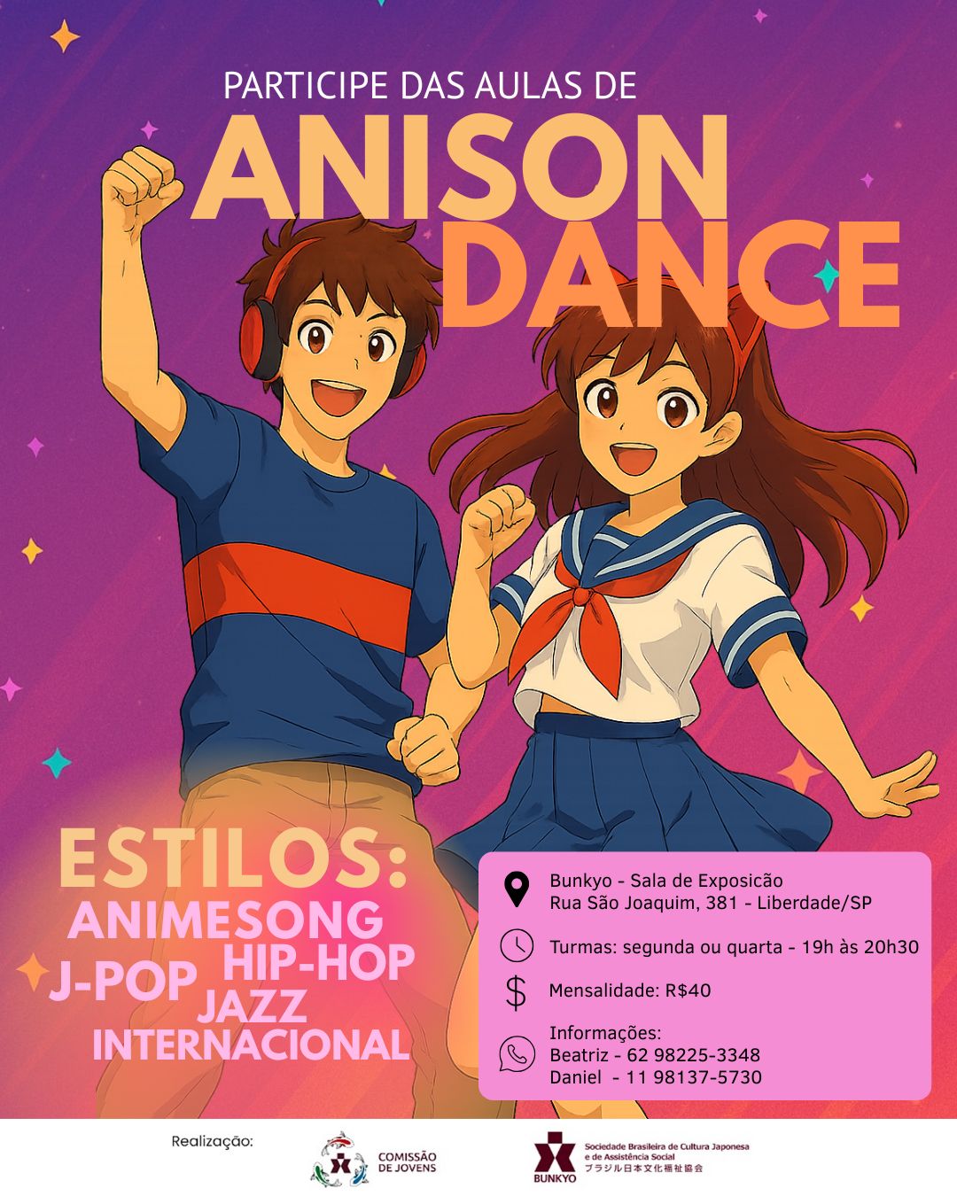 Vamos aprender com a professora Yukina Natsume, voluntária da JICA e a Comissão de Jovens do Bunkyo, a reproduzir coreografias populares e criar coreografias originais, com músicas famosas de animes e J-Pop!