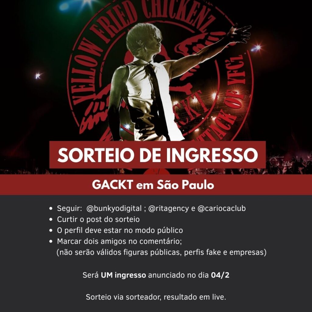 Garanta o seu par de ingressos: https://www.ritstore.agency/event-details/gackt-no-brasil