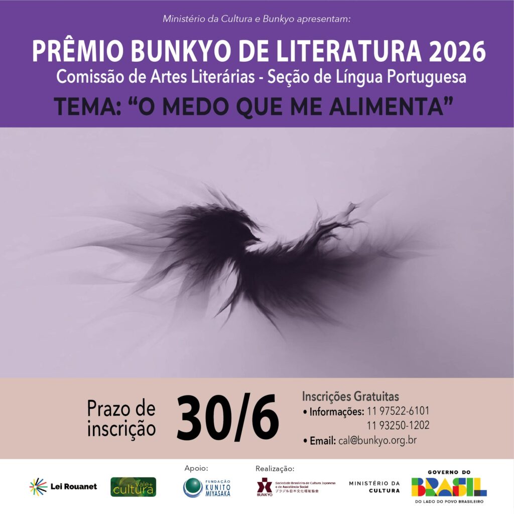 “O Medo que me Alimenta” é o tema escolhido para concorrer ao Prêmio Bunkyo de Literatura 2026 organizado pela Comissão de Artes Literárias – Seção de Língua Portuguesa.