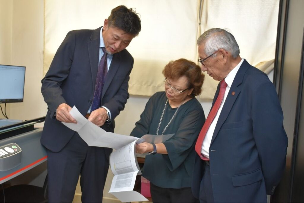 No Salão Nobre, para a assinatura dos termos da doação, o Representante-Chefe da JICA Miyasaki, em sua saudação lembrou que, em 2020, esse equipamento foi entregue ao Museu da Imigração “sob a forma de empréstimo”, e, desde então, teve notícias que “estava fazendo um excelente uso para preservação dos jornais e livros antigos”.