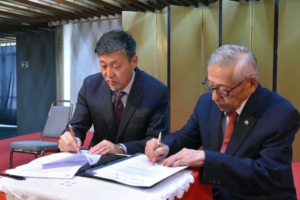 Akihiro Miyasaki (JICA) e Roberto Yoshihiro Nishio assinam o termo de doação