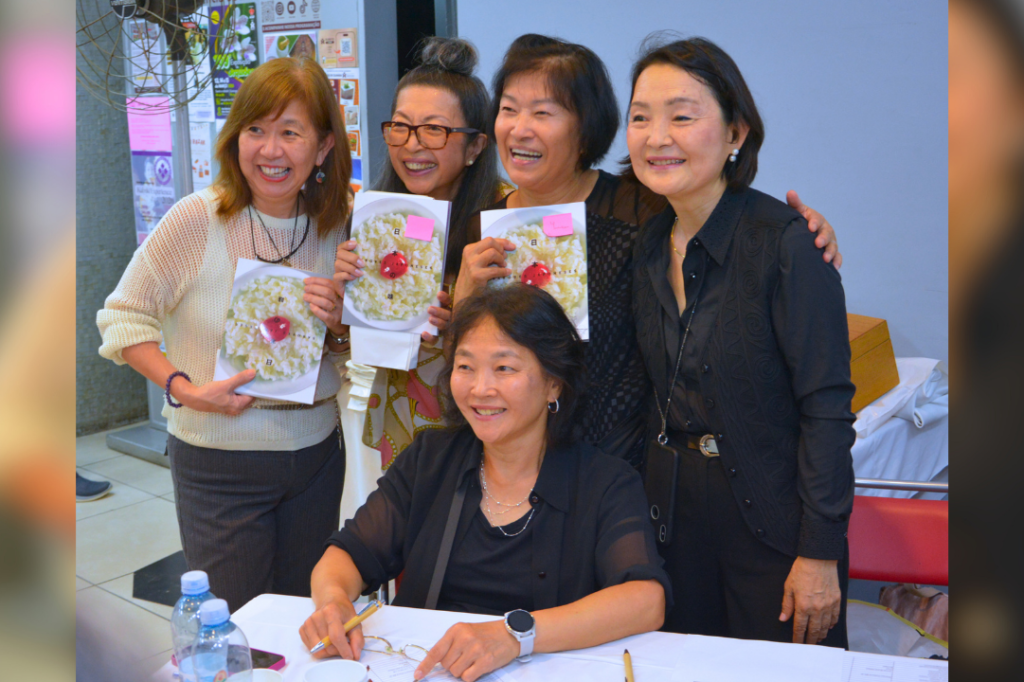 Da esq. para dir. Cecília Yamaguchi, Marli Furuno, Yuriko Ito (aluna) e Alice Murasawa, integrantes da Comissão de Gastronomia