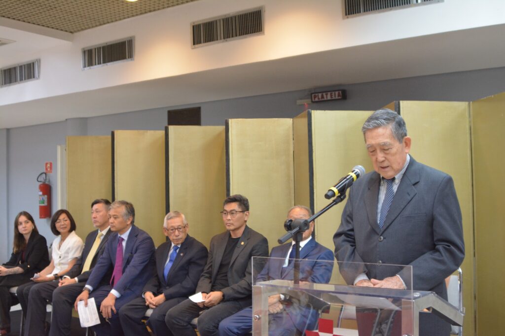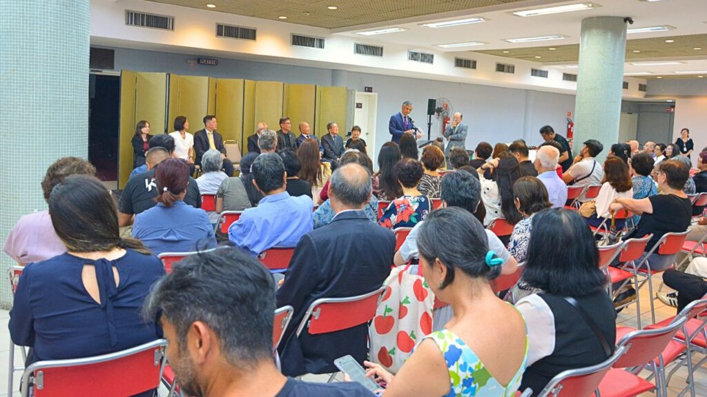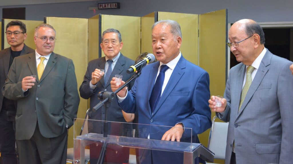 Ao fundo, a saudação do cônsul-geral-adjunto Jiro Takamatsu