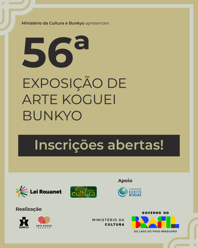 Estão oficialmente abertas as inscrições para participação na 56ª Exposição de Arte Koguei Bunkyo, que acontecerá no período de 4 a 18 de outubro de 2026.