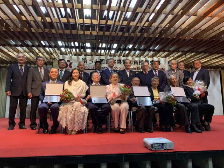 A cerimônia de homenagem Quatro destaques do setor agrícola do país protagonizaram mais um encontro sobre suas expertises e resultados conquistados na cerimônia do 54º Prêmio Kiyoshi Yamamoto, no último dia 31 de outubro, no Salão Nobre do Bunkyo. Nesse ano em que se comemoram os 130 anos do Tratado