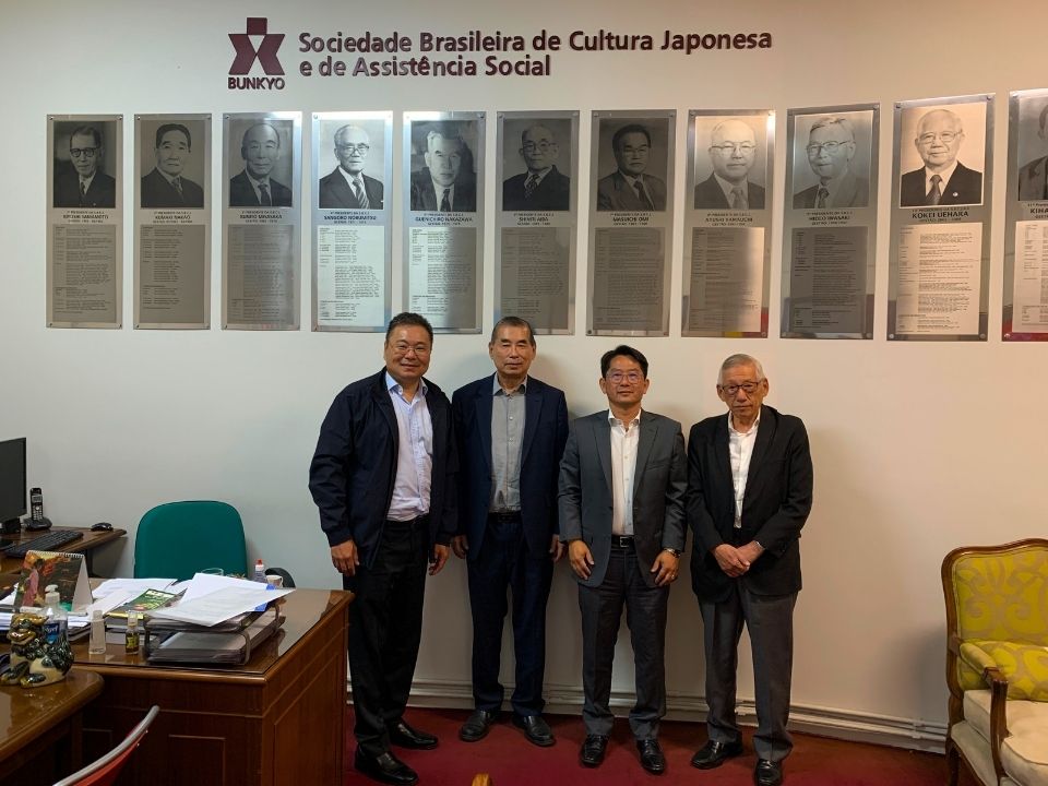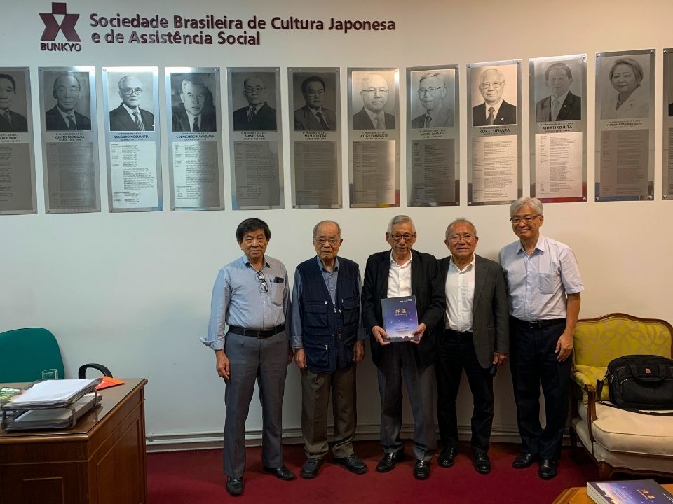 2026.3.4 – Visita da Associação Okinawa Patriarca: editor do livro “Muribushi” Tetsuo Shinzato, editor chefe Akira Miyagi, presidente do Bunkyo Roberto Yoshihiro Nishio, vice-presidente do conselho deliberativo do Bunkyo Eiki Shimabukuro e presidente da associação Okinawa Patriarca Fremingo Takao Maeda.