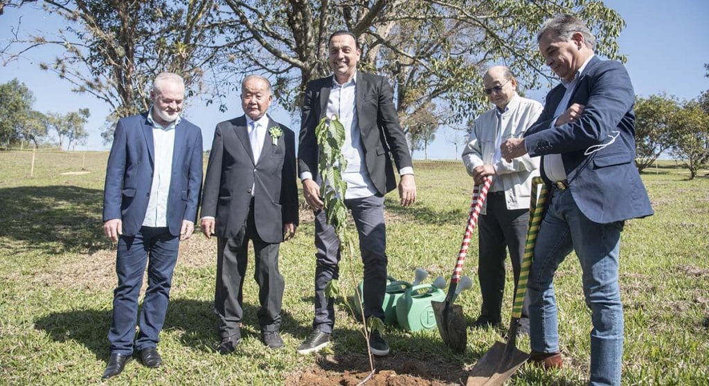 Por volta das 11h30, as autoridades participaram do plantio de mudas de sakura próximo ao Lago Imperial.