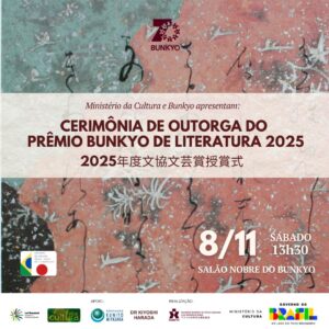 A Comissão de Artes Literárias do Bunkyo realizará no dia 8 de novembro a partir das 13h30, a cerimônia de outorga dos diplomas do Prêmio Bunkyo de Literatura
